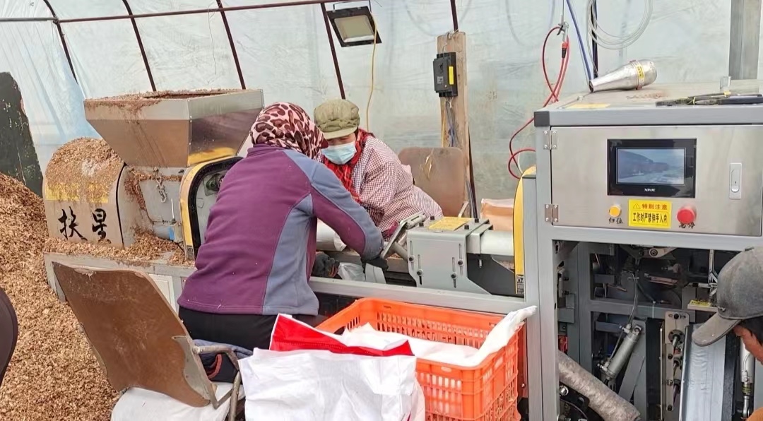 河北承德家庭種植客戶使用扶星系列3號裝袋扎口機單臺進行日產(chǎn)7000袋菌生產(chǎn)作業(yè)